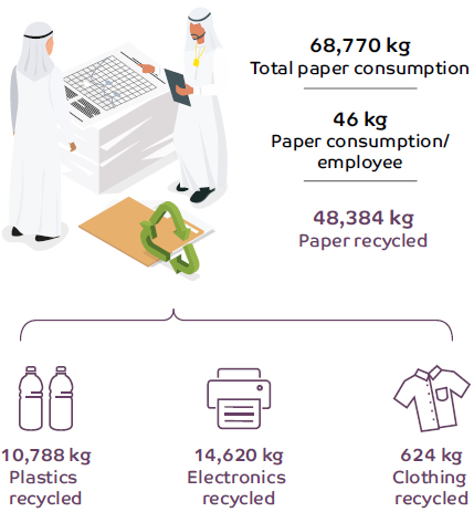 The specific environmental initiatives include monitoring and reducing energy use, greenhouse gas emissions, paper and water consumption; reducing waste production and recycling; investing in energy conserving technologies; and incorporating environmental considerations into all aspects of building construction and management. Our Building Management System has shown a reduction in water and electricity consumption which reflects a positive environmental impact. Five-year paper consumption and recycling and water expenditure are shown below: