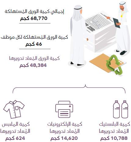 شهدت عملية إعادة تدوير الورق زيادة ملحوظة خلال الفترة من عام 2017 حتى عام 2018 نظراً لزيادة حملات توعية الموظفين والأنشطة الداعية إلى إعادة التدوير.